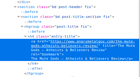Inspecting the source of an album review on angrymetalguy.com